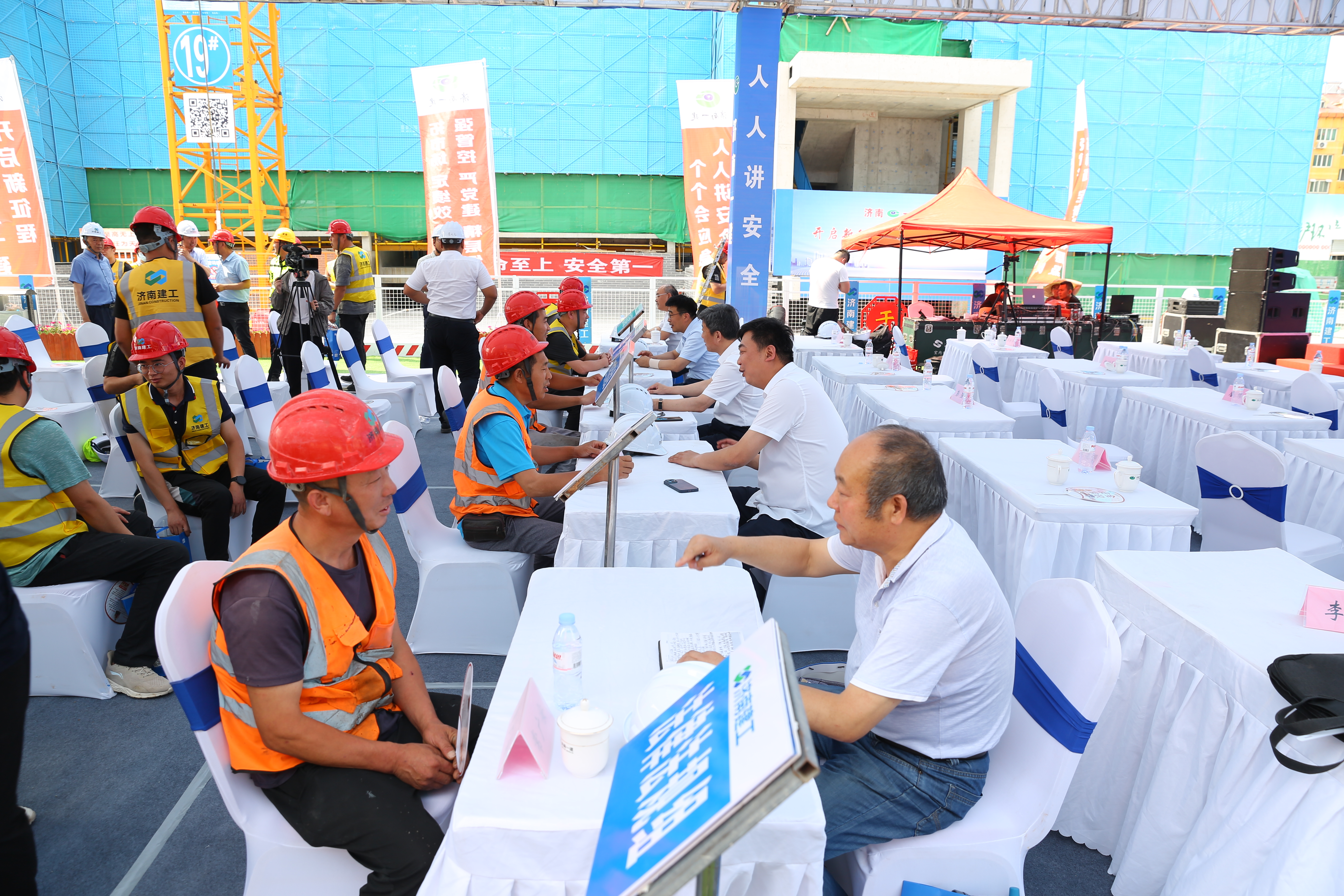 為深入貫徹全國第22個“安全生產月”活動,進一步普及安全生產知識,增強全體職工安全意識和自救互救能力,切實加強安全生產管理人員人才隊伍建設,提升安全生產管理水平,濟南建工集團于6月16日在濟南一建中博謙崇云境建設項目一期工地成功舉辦“安全宣傳咨詢日”活動。集團黨委委員、副總經理張軍,安全環保部負責人,集團所屬一級企業安全總監、安全環保部負責人等參加活動。